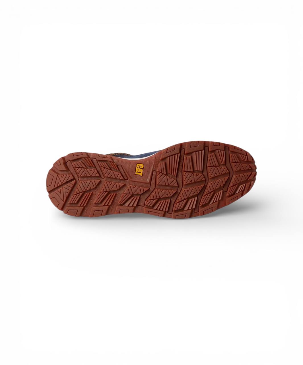 Rugged work boots from Caterpillar. Full-grain leather upper. Steel shank for stability. Slip-resistant rubber outsole. Electrical hazard rated.